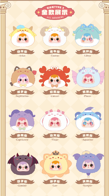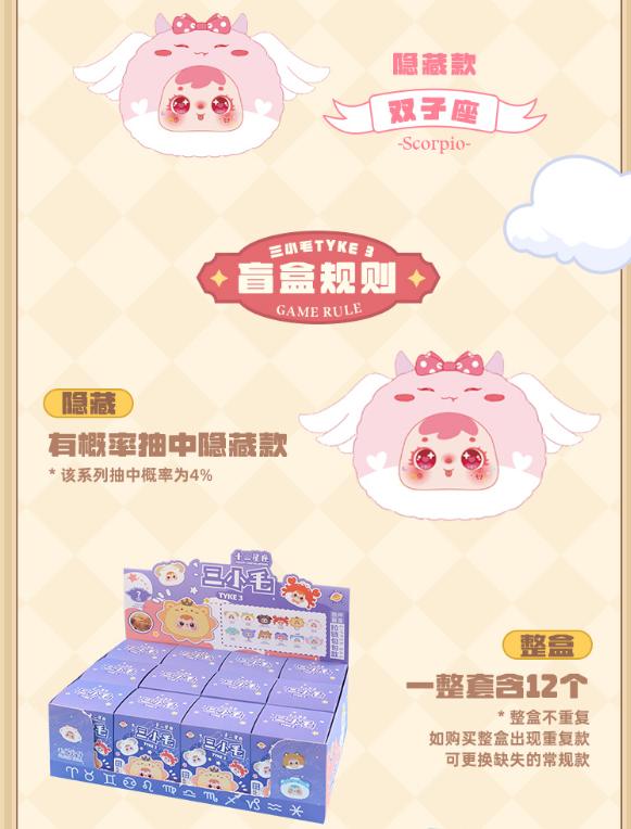 Three small hats and twelve zodiac-themed zipper bags三小毛十二星座拉链包